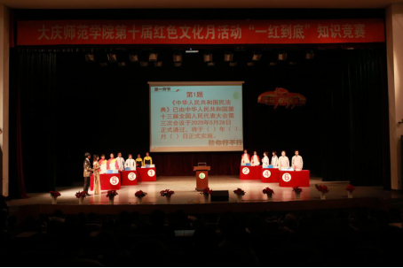 大赛伊始,各院代表队拿出了饱满的热情,展开了激烈比拼。第一环节“验你行不行”各院代表队依次选题进行回答。现场气氛紧张,硝烟弥漫。第二环节“你的命运谁做主”,由每队互相选题,答对加上相应分,答错扣除相应分。随着比赛的进行,各队比分拉大,第二环节结束后教师教育学院以与其他学院20分的差距遥遥领先。比赛进入最后环节“你将一红到底”,每个队伍在规定时间内进行抢答。各队队员沉着思考,冷静作答,现场观众也随着场上节奏的变化思考、讨论,现场高潮迭起,掌声不断,经过紧张激烈的比拼,教师教育学院最终摘得本次“一红到底"知识竞赛的桂冠。