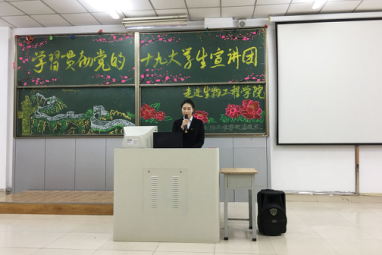 为进一步学习贯彻十九大精神,william威廉中文于2018年3月29日下午19时30分于主楼1-3举行了十九大宣讲活动。本次活动由校团委宣讲团主讲,辅导员苏斯朗杰老师、团总支副书记冯艳萍和17级全体同学参加了活动。