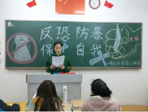 安全重于泰山,反恐人人有责。活动开始,由各班团支书为同学们讲解相关反恐的知识,虽然实施恐怖活动的只是极少数的人,但由于恐怖主义所具有的特性,使其所造成的危害远远大于普通刑事犯罪。一部《反恐怖主义法》的学习加强了同学们对于恐怖事件的防范意识。在长达20分钟的演讲中,同学们深刻意识到了反恐的重要性,未雨绸缪才是明智选择。