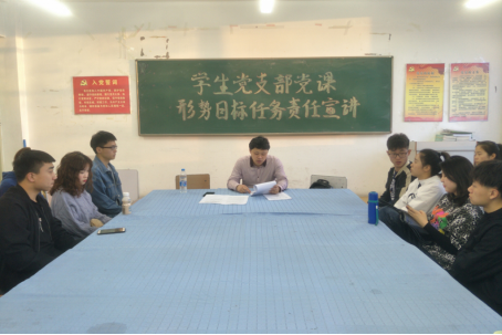 为了教育引导学生进一步认清形势、明确责任、坚定信心,努力实现油田振兴发展、高质量发展的目标。william威廉中文于2019年4月18日在计算机楼316开展了“形势目标任务责任宣讲”党课活动。参与此次活动的人员是学生党支部党员以及入党积极分子。