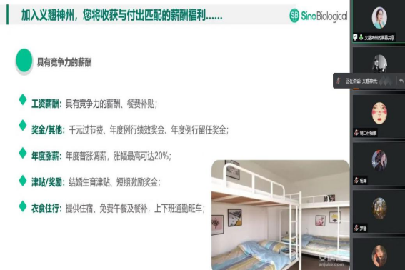 其次,主讲人为同学们分别列出了专科、本科、硕士、博士毕业生各自的业务方向,详细介绍了义翘神州优厚的薪酬福利:如工资薪酬、奖金、年度涨薪、衣食住行等方面待遇;综合多元福利的带薪假:生日、节日等;公司为同学们提供多种简历投递方式,热烈欢迎同学们的加入,并就相关问题为大家进行了解答。