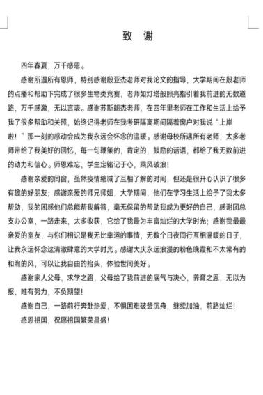 毕业将至,从大一到大四,我时刻铭记着母校的校规,忘不了食堂的香气,忘不了老师的谆谆教诲,忘不了同学们的叽叽喳喳。伴随着六月的步伐,我们已经在大学生活中即将画成了句号。感谢老师在这大学四年里对我们的照顾与指导。我将不甚感激!在此,祝福我的母校越来越好,人才优胜,砥砺前行!