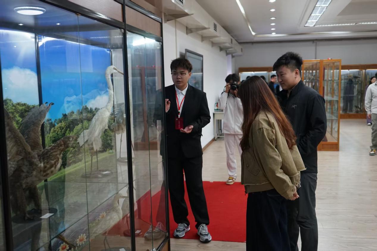 座谈会后,校友们在学院老师和学生志愿者的引导下,参观了焕然一新的动植物标本馆。动植物标本馆作为大庆市科普教育基地和黑龙江共青团“四创”教育基地,馆内珍藏的各类动植物标本、微生物展品以及先进的实验设施,令校友们赞叹不已。他们时而驻足仔细观看,时而与身旁的老师、同学兴奋地交流回忆,寻找当年学习实践的痕迹。许多校友感慨,标本馆的规模、展品数量和现代化水平与当年相比发生了翻天覆地的变化,这是学院飞速发展的生动缩影,也体现了学校对实践教学和科学素养培育的高度重视。