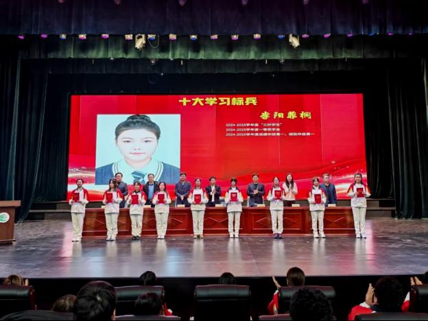 学习标兵代表曹宏妍在发言中分享了她的感悟,呼吁青年学子以卓越学习能力为主旋律,勇于担当,敢于独立应对挑战,做到知行合一。她坚信,唯有直面挫折、永不言弃,方能静待人生的“蝴蝶效应”,并带领全体学生庄严宣誓,将以理想为帆、奋斗为桨,在科学的海洋中破浪前行。